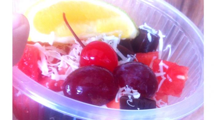 Satu cup salad buah ala Salad Buah Lampung Dixsortes dibandrol harga Rp 20 ribu.