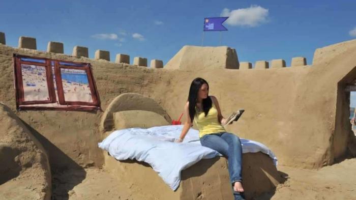 Ini adalah sebuah hotel di pinggir pantai yang terbuat dari pasir pantai.