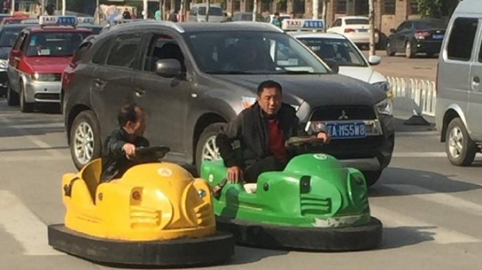 Nah, di Shenyang, Tiongkok dua pria berbalapan dengan mobil Bom-bom Car pada hari Sabtu (15/10/2016), seperti dilansir TribunTravel.com dari My News Hub.