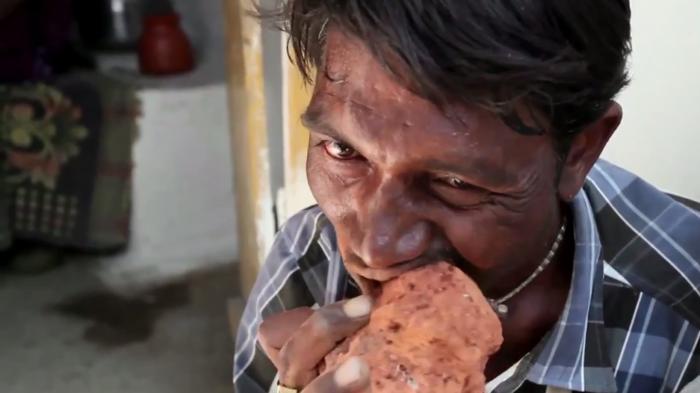 Pria asal Karnataka, India, ini kecanduan makan batu bata, kerikil, dan lumpur.