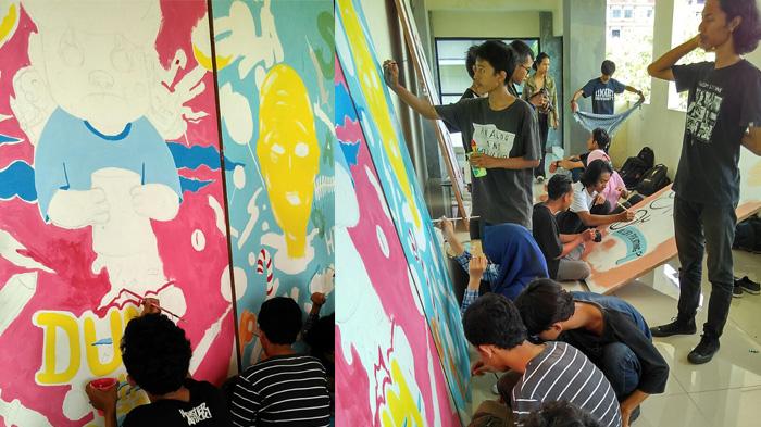 Dalam event kratif tersebut, mahasiswa DKV, menyumbangkan karya berupa mural raksasa.