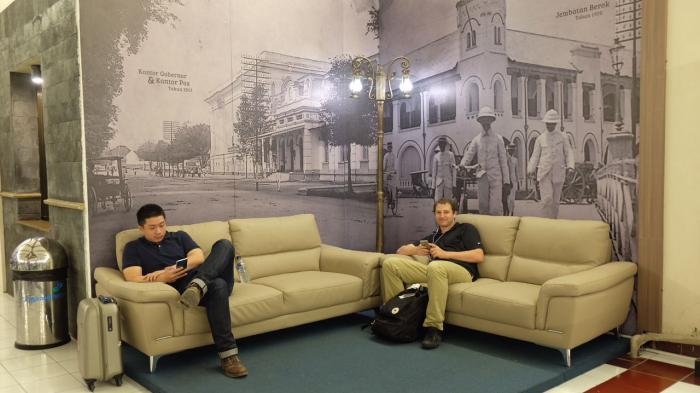 Wallpaper cozy corner bergambar Kantor Pos dan Kantor Gubernur tahun 1912 semakin memberi kesan ruang tersebut bernuansa klasik.