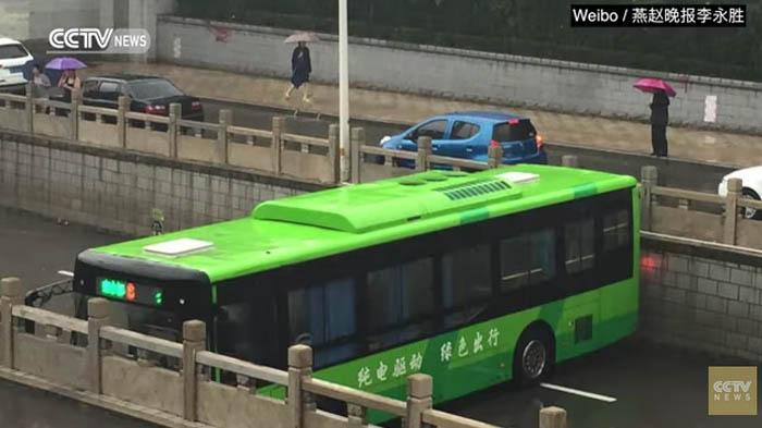 Situs berita China Central Television menyebut, sopir bus itu terpaksa berputar balik karena mendengar ada informasi soal banjir di jalanan di depannya.