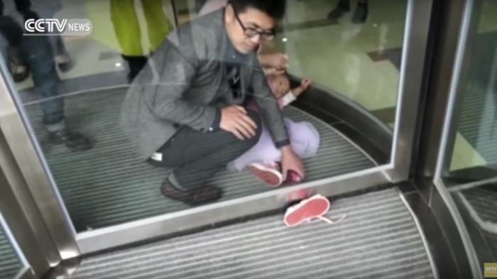 Hal ini terjadi setelah gadis ini bermain di pintu putar otomatis.