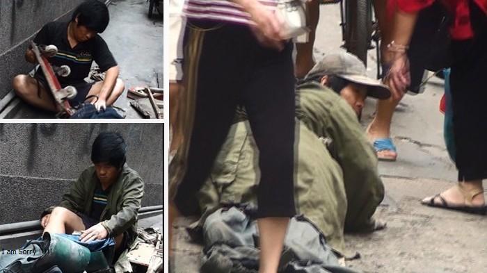 Kali ini seorang pengemis yang berpura-pura buntung tanpa kaki ketahuan memanipulasi.