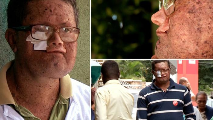 Penyakit yang diderita Jardim telah menggerogoti kulit bibir, hidung, pipi, dan mata.