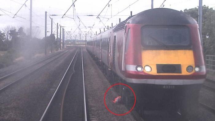 Terlihat dengan jelas masinis Virgin Trains East Coast melompat ke bawah keretanya sendiri.