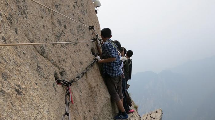 Sampai di sini kamu akan langsung diajak berpetualang naik gunung Huashan dengan ketinggian 2.160 m alias 7.087 kaki.