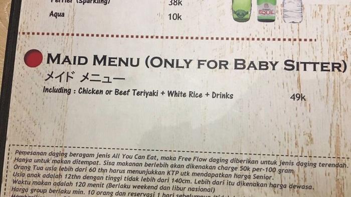 Menu khusus pembantu rumah tangga atau dikenal dengan 'Maid Menu' sempat memicu perdebatan dikalangan netizen di Twitter.