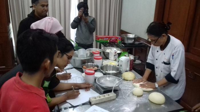 Hari ini, chef khusus pastry dari Novotel Lombok, Chef Megawati datang untuk memberikan trainning mengenai pembuatan roti asal Prancis, croissant.