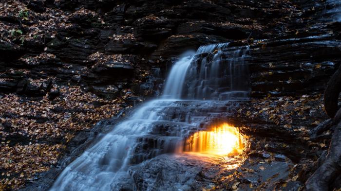 TRIBUNTRAVEL.COM - Terselip jauh di daerah Chestnut Ridge Park, New York, menyimpan keindahan air terjun kecil yang disebut Eternal Flame Falls atau Air Terjun Api Abadi.