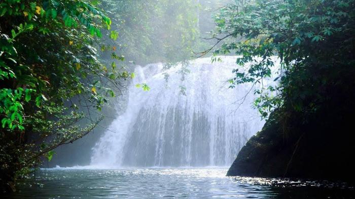 TRIBUNTRAVEL.COM - Nan jauh di pedalaman hutan Kalimantan Selatan, tak hanya menyimpan berbagai pesona flora dan fauna khas hutan tropis Pulau Borneo, namun juga air terjunnya yang menyegarkan.