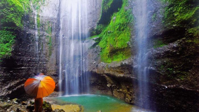 Dikutip TribunTravel.com dari wikipedia, Air Terjun Madakaripura curug ini dikelilingi bukit yang meneteskan air pada seluruh bidang tebingnya layaknya hujan.