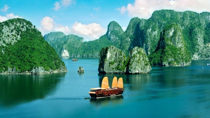 Halong Bay yang terletak di Teluk Tonkin yang memiliki lebih 1.600 pulau dari yang besar hingga pulau kecil.