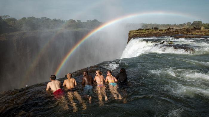 Bernama Devils Pool alias kolam setan, yang terletak di bibir Victoria Falls perbatasan Zimbabwe dan Zambia.