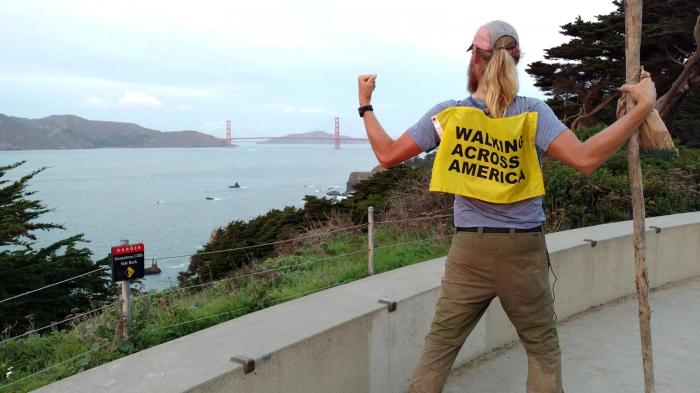 Logan Combs sudah menempuh 3.300 mil atau 5310 Km untuk sampai ke San Fransisco dengan berjalan kaki.