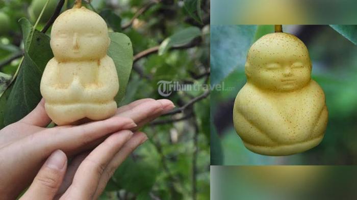 Buah unik ini dikenal dengan nama pir bayo atau kerap juga disebut ‘god of fortune pear.'