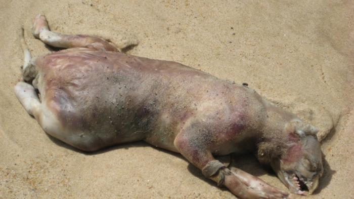 Bangkai hewan itu dilaporkan terdampar di pantai Margete, tetapi selama 10 hari tidak ada ilmuwan yang datang menginvestigasi bangkainya, sehingga tidak ada deskripsi tepercaya yang dipublikasikan.