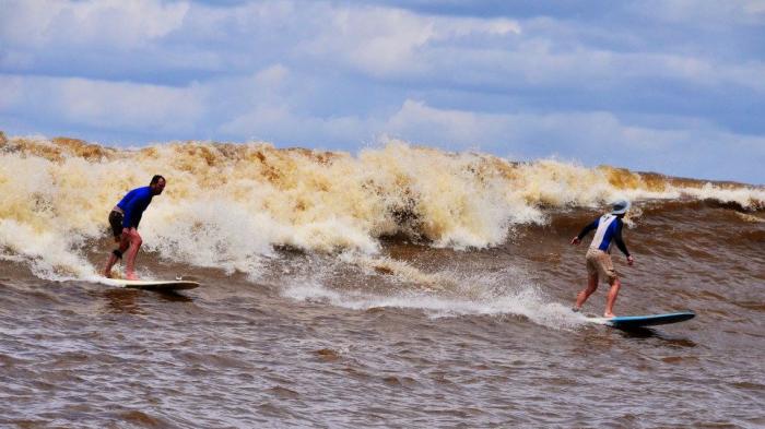 TRIBUNTRAVEL.COM - Guys, bagi kamu pengemar wisata air, cobalah surfing di Sungai Kampar, Riau.