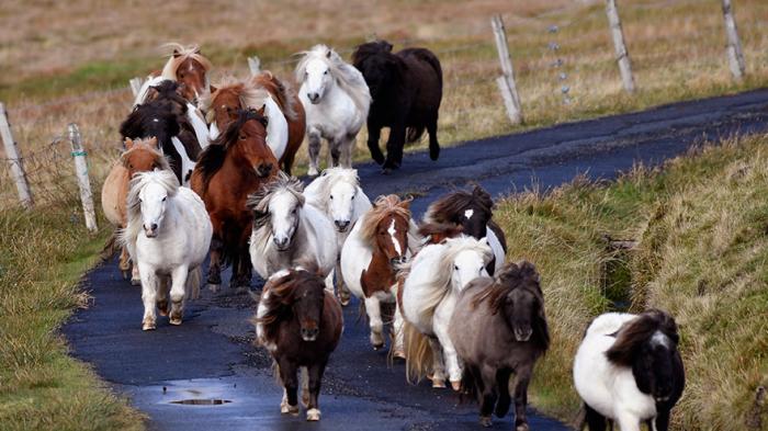 Asal tahu ya, inilah tempat asal Shetland Ponies, jenis kuda poni yang memiliki bulu sangat panjang, kaki pendek, dan otak cerdas.