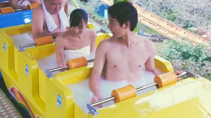 Ada juga adegan yang menunjukkan kereta roll coaster berisi air spa yang menenangkan.