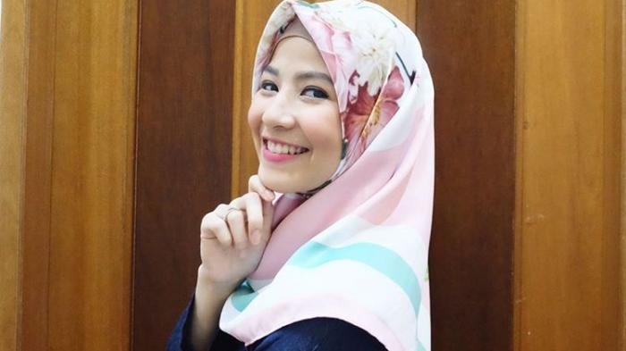 Dengan piawai, Natasha memadukan style ini dengan sneakers dan jilbab bermotif, tanpa aksesori apapun di kepala.