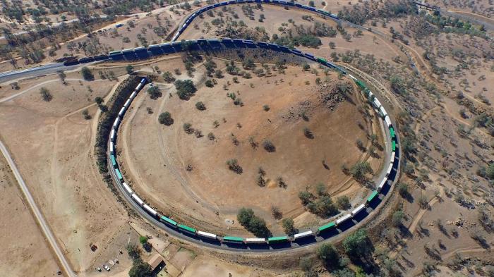 Lingkaran ikonik sepanjang 1,17 kilometer itu dibangun pada abad ke-19 sebagai bagian dari jalur utama Southern Pacific yang menyeberangi Gunung Tehachapi.