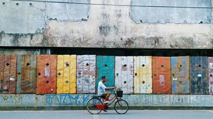 Dinding bekas drum yang ada di sepanjang jalan Kampung Melayu menjadi sasaran objek foto anak muda.