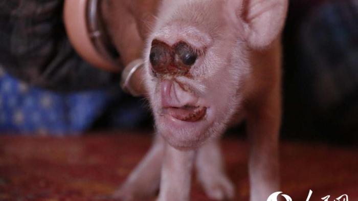Di sebuah perdesaan bagian barat daya China, ada babi yang lahir dengan dua moncong dan tiga mata.