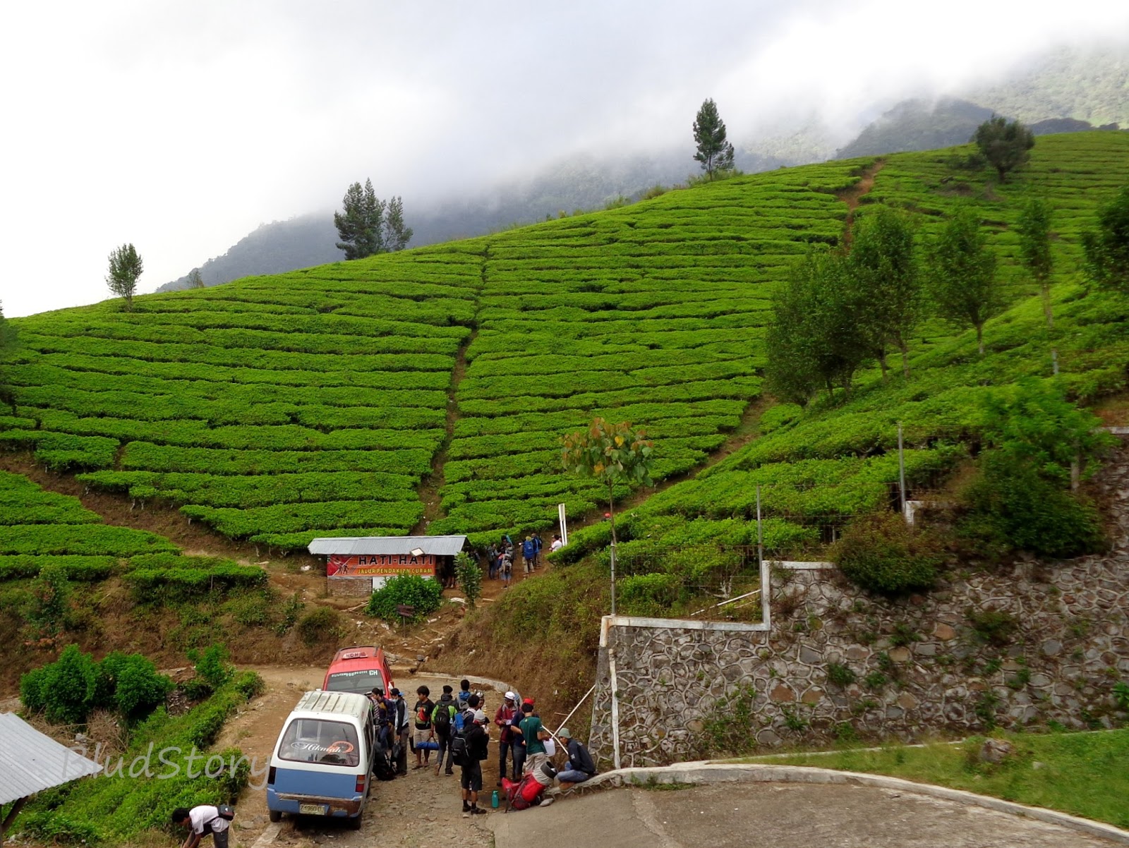 Ketika kamu masih berada di kaki gunung melewati hamparan kebun teh hijau yang keren banget guys untuk dijadikan spot foto.