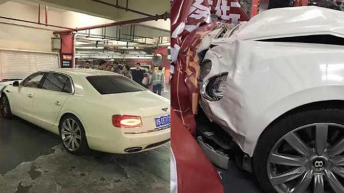 Bentley seharga Rp 5,7 miliar itupun terhenti karena menabrak apa pun yang berada di ujung jalan.