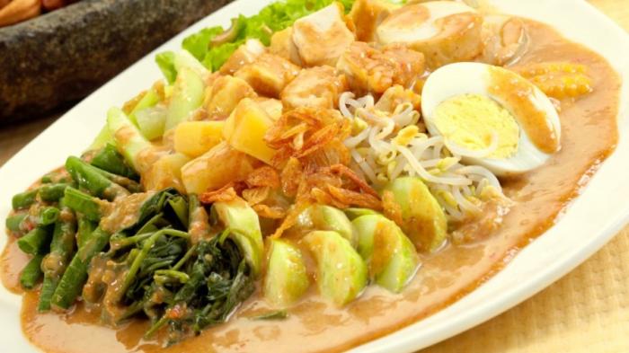 Makanan yang diolah dari bahan berbagai macam sayur, tahu, tempe, dan disiram bumbu kacang ini asli makanan Indonesia, loh.