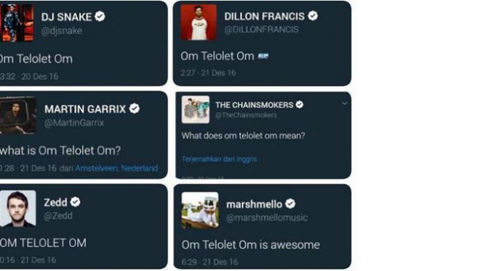 Selebritas dunia khususnya para DJ, sebut saja Zedd, Martin Garrix, Hardwell, Yellow Claw hingga DJ Snake beramai-ramai mengicaukan "om telolet om" di media sosial.