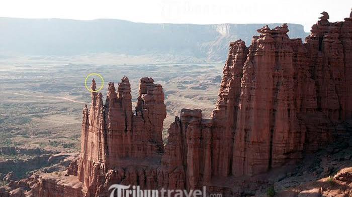 Lokasi pohon Natal tersebut berada di sebuah puncak Fisher Towers.
