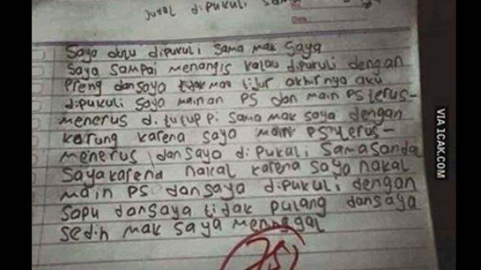 Entah siapa penulis sebenarnya, tetapi tulisan tersebut diberi judul 'Dipukuli Sama Mak Saya.'