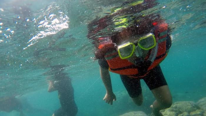 Ketika tiba saatnya snorkeling, dinginnya air laut mula-mula akan menyergap tubuhmu.