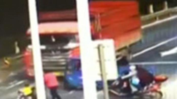 Peristiwa ini terjadi di sebuah jalan raya di Kota Huzhou, China timur.