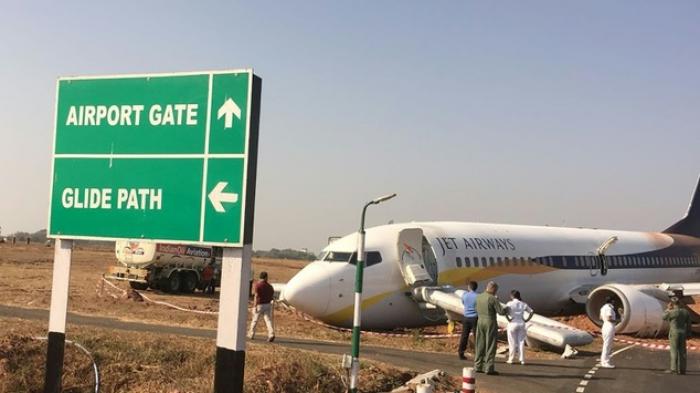Menurut keterangan Jet Airways, pesawat yang menuju Mumbai tersebut telah berbelok dari landasan pacu ketika bersiap untuk take off.