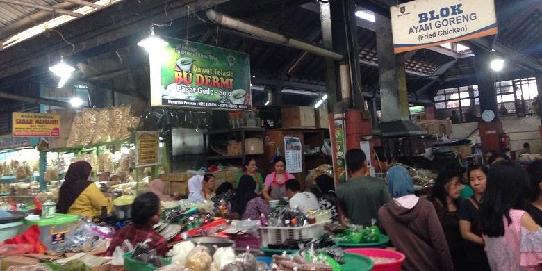 Suasana sekitar warung es Dawet Telasih Bu Dermi di Pasar Gede Hardjonagoro, Solo, Jawa Tengah, Jumat (22/7/2016). Semangkukk es dawet telasih ditawarkan dengan harga Rp 8.000.