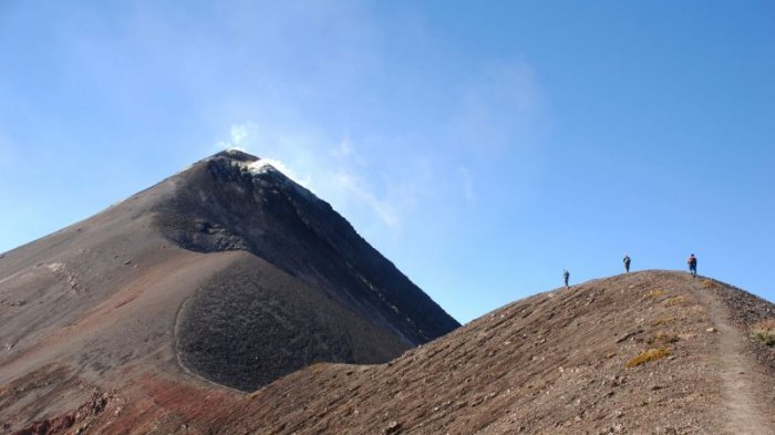 Dua kelompok mendaki puncak Acatenango yang berada di sebelah barat Ibu Kota Guatemala City.