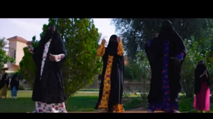 Tiga wanita berjilbab dengan bawu warna-warni tersebut kemudian menari-menari, bermain skateboard, dan basket tanpa memedulikan pandangan pria.