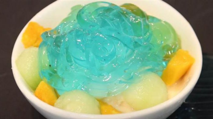 But wait, guys, bila dilihat sekilas, dessert ini mirip es mi jelly yang dijual di Indonesia, ya.
