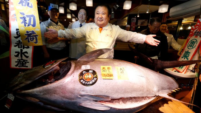 Rekor sebelumnya juga berhasil diraihnya dengan membeli tuna sirip biru seberat 221 kg, seharga 1,8 juta dolar atau lebih dari Rp 24 miliar pada tahun 2013 silam.