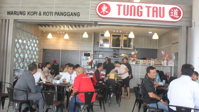 Seperti biasa di tempat ini, kamu bisa memesan menu andalan kopi hitam dan roti bakar khas Gerai Tungtau dengan aneka pilihan isian.