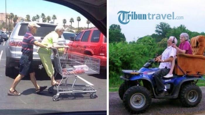 1. Nggak mau istrinya capek jalan, kakek ini lakukan hal ini