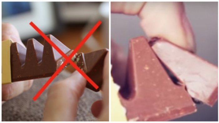 kebanyakan orang akan mendorong cokelat ini ke arah luar untuk memotongnya.