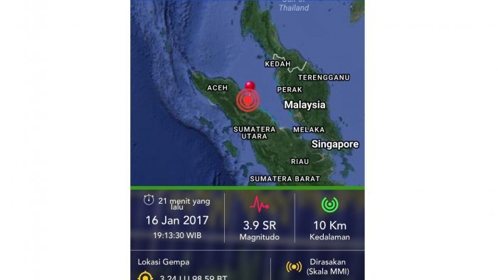Dari informasi BNPB, gempa dirasakan di beberapa Kabupaten Kota di Sumatera Utara.