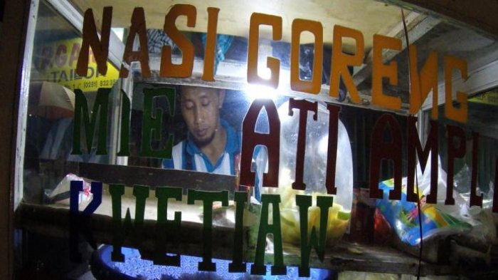 Gerobak nasi goreng milik Kopral buka di depan RS Salak mulai pukul 19.30-03.00 WIB.