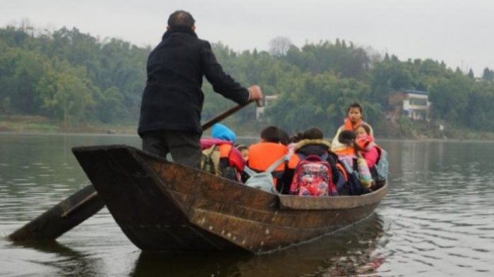 Seorang guru selama 10 tahun terakhir rela mendayung perahu untuk membawa murid-muridnya ke sekolah.
