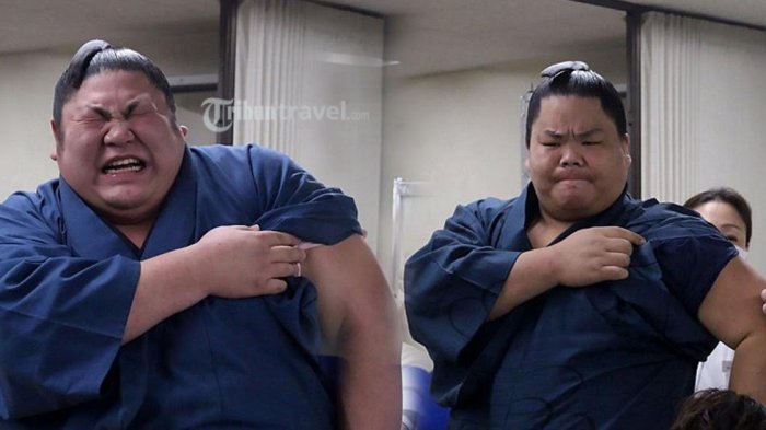 Nah, dengan cara ini mereka berharap para sumo mendapatkan pelajaran dan lebih berani menghadapi tantangan ini.